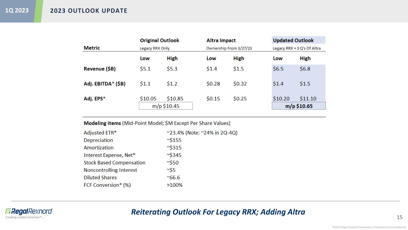 ©2022 Regal Rexnord Corporation, Proprietary and Confidential Creating a better tomorrow™… Reiterating Outlook For Legacy RRX; Adding Altra 2023 OUTLOOK UPDATE 15 1Q 2023