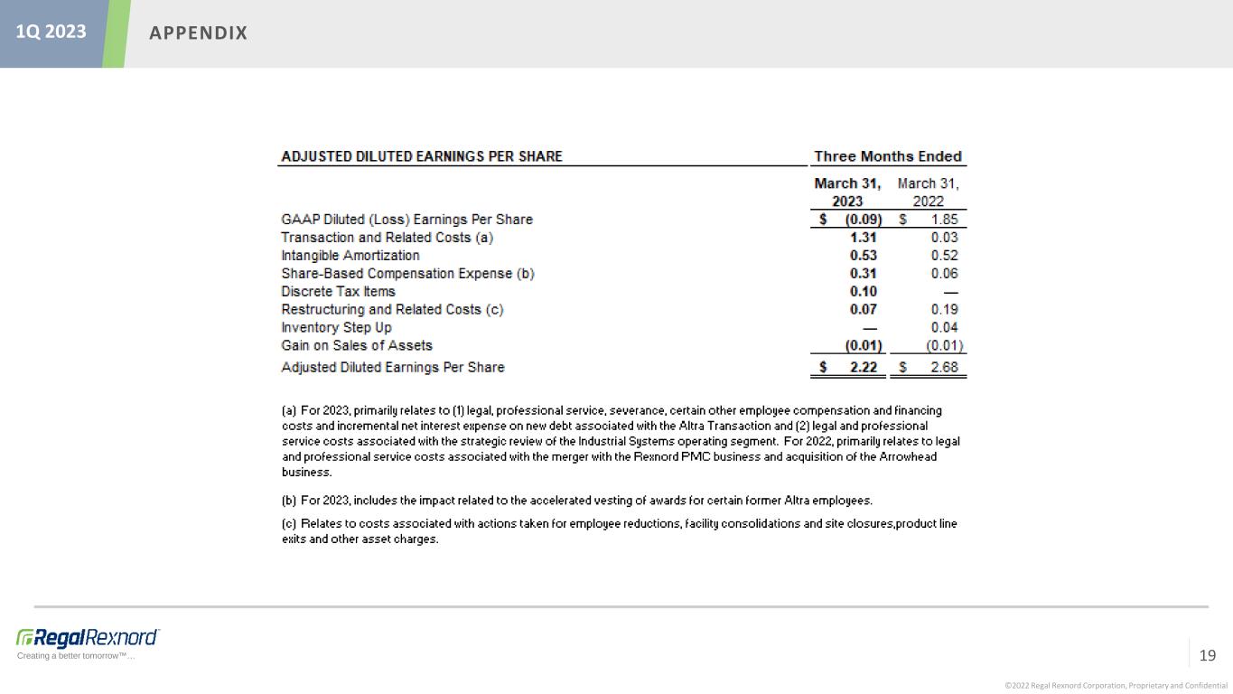 ©2022 Regal Rexnord Corporation, Proprietary and Confidential Creating a better tomorrow™… APPENDIX 19 1Q 2023