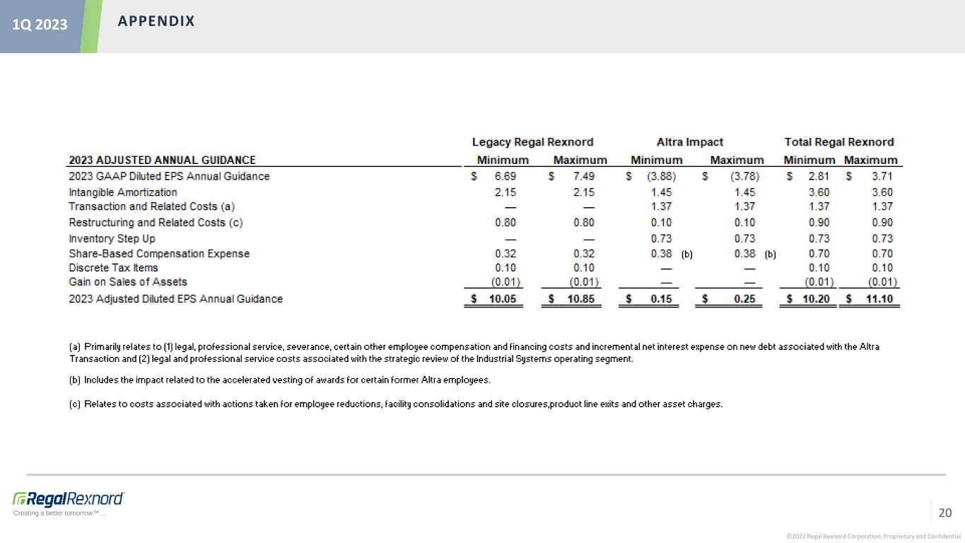 ©2022 Regal Rexnord Corporation, Proprietary and Confidential Creating a better tomorrow™… APPENDIX 20 1Q 2023