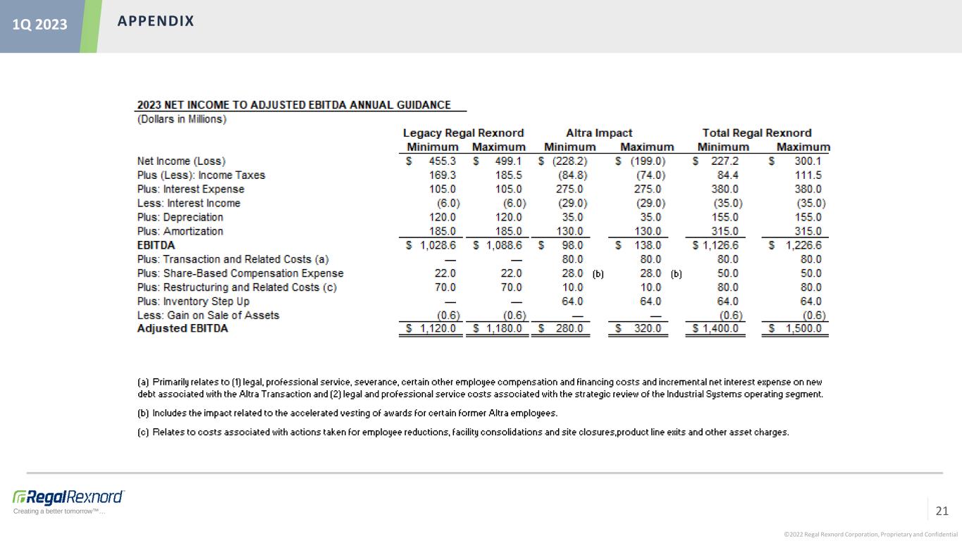 ©2022 Regal Rexnord Corporation, Proprietary and Confidential Creating a better tomorrow™… APPENDIX 21 1Q 2023