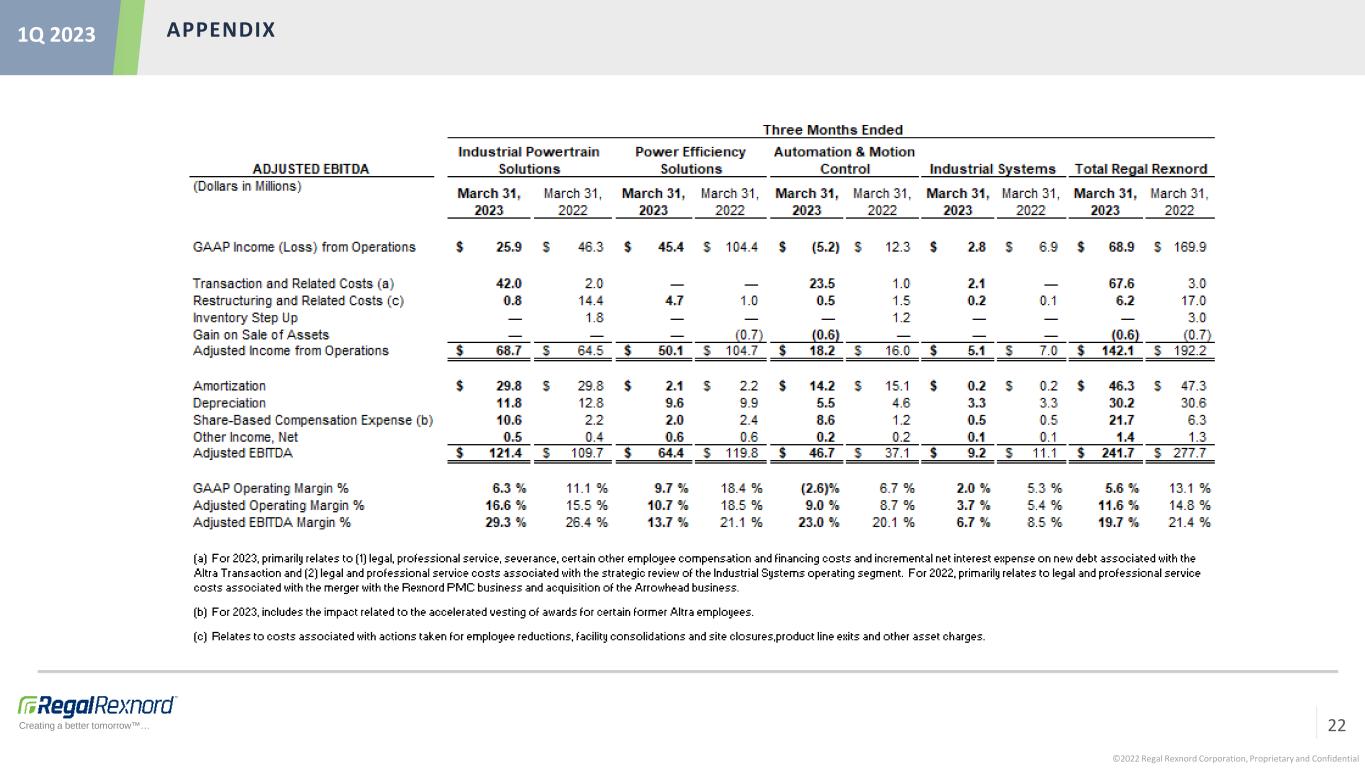 ©2022 Regal Rexnord Corporation, Proprietary and Confidential Creating a better tomorrow™… APPENDIX 22 1Q 2023