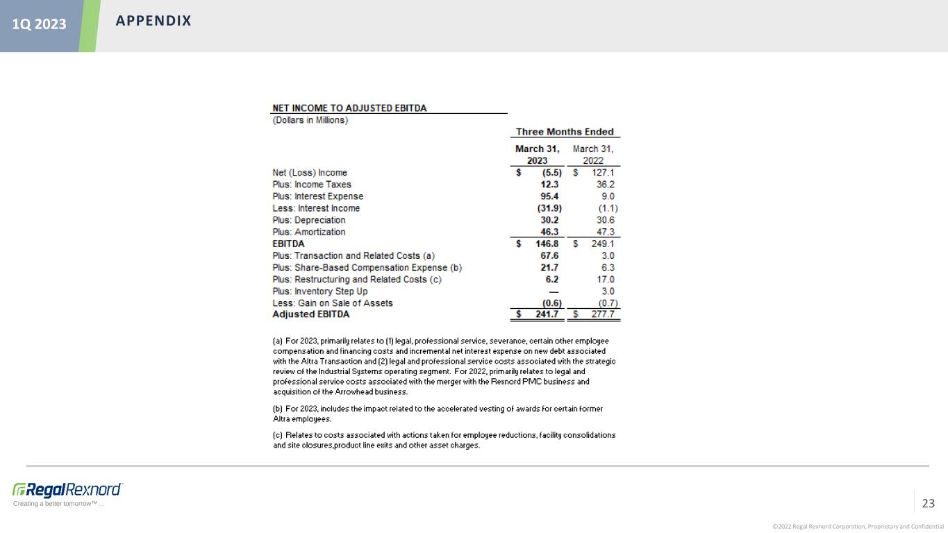 ©2022 Regal Rexnord Corporation, Proprietary and Confidential Creating a better tomorrow™… APPENDIX 23 1Q 2023