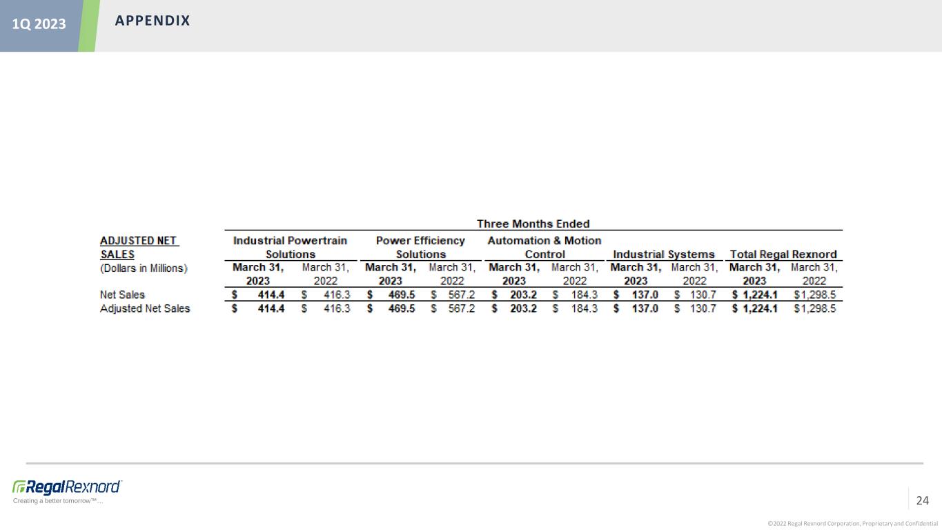 ©2022 Regal Rexnord Corporation, Proprietary and Confidential Creating a better tomorrow™… APPENDIX 24 1Q 2023