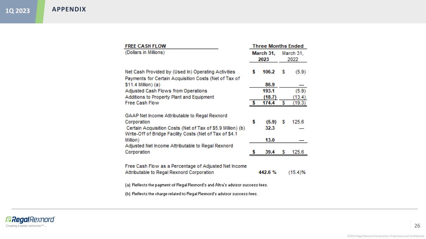 ©2022 Regal Rexnord Corporation, Proprietary and Confidential Creating a better tomorrow™… APPENDIX 26 1Q 2023
