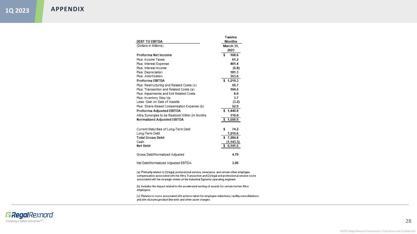 ©2022 Regal Rexnord Corporation, Proprietary and Confidential Creating a better tomorrow™… APPENDIX 28 1Q 2023