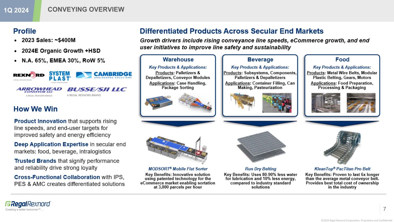 ©2024 Regal Rexnord Corporation, Proprietary and Confidential Creating a better tomorrow™… CONVEYING OVERVIEW 1Q 2024 7