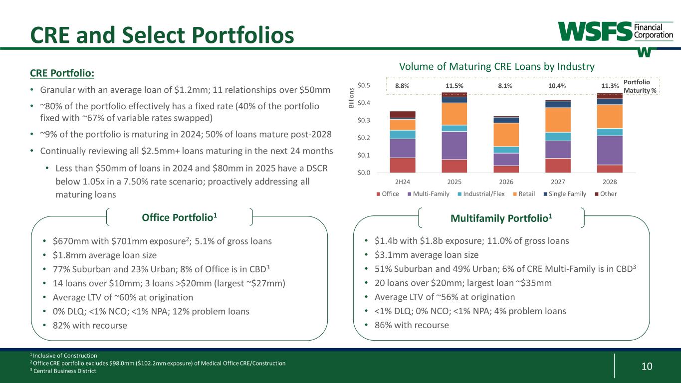 9 Stable Asset Quality Metrics Problem Assets Nonperforming Assets Delinquencies Net Charge-offs $465 $543 $556 $573 $629 3.76% 4.27% 4.34% 4.41% 4.76% 0.0% 1.2% 2.4% 3.6% 4.8% 6.0% $300 $400 $500 $600 $700 $800 2Q23 3Q23 4Q23 1Q24 2Q24 M ill io ns Problem Assets % of Gross Loans $73 $111 $102 $105 $89 0.59% 0.87% 0.80% 0.81% 0.68% 0.0% 0.3% 0.6% 0.9% 1.2% 1.5% $0 $25 $50 $75 $100 $125 $150 $175 $200 2Q23 3Q23 4Q23 1Q24 2Q24 M ill io ns Delinquencies % of Gross Loans $8 $8 $10 $10 $9 $5 $6 $5 -$1 $5 0.43% 0.45% 0.46% 0.27% 0.44% 0.0% 0.1% 0.2% 0.3% 0.4% 0.5% $0 $4 $8 $12 $16 $20 2Q23 3Q23 4Q23 1Q24 2Q24 M ill io ns Upstart/NewLane Other % of Avg. Gross Loans $34 $58 $76 $67 $65 0.16% 0.29% 0.37% 0.33% 0.32% 0.0% 0.1% 0.2% 0.3% 0.4% 0.5% $0 $20 $40 $60 $80 $100 2Q23 3Q23 4Q23 1Q24 2Q24 M ill io ns Nonperforming Assets % of Total Assets