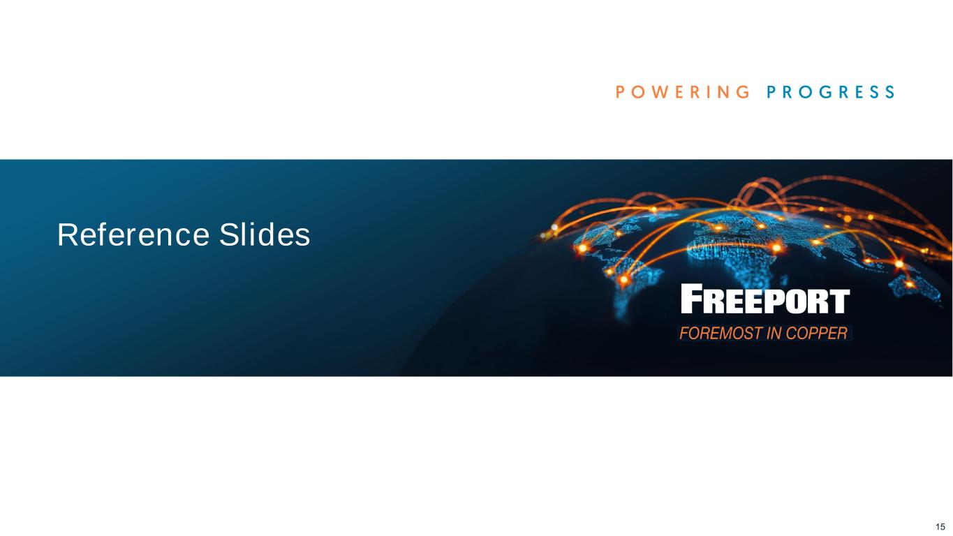 Leadership Position in Critical Metal 14 Organic Growth Pipeline Strong Global Leader with Valuable U.S. Franchise Significant Gold Producer Large Scale Producer Freeport – Store of Value
