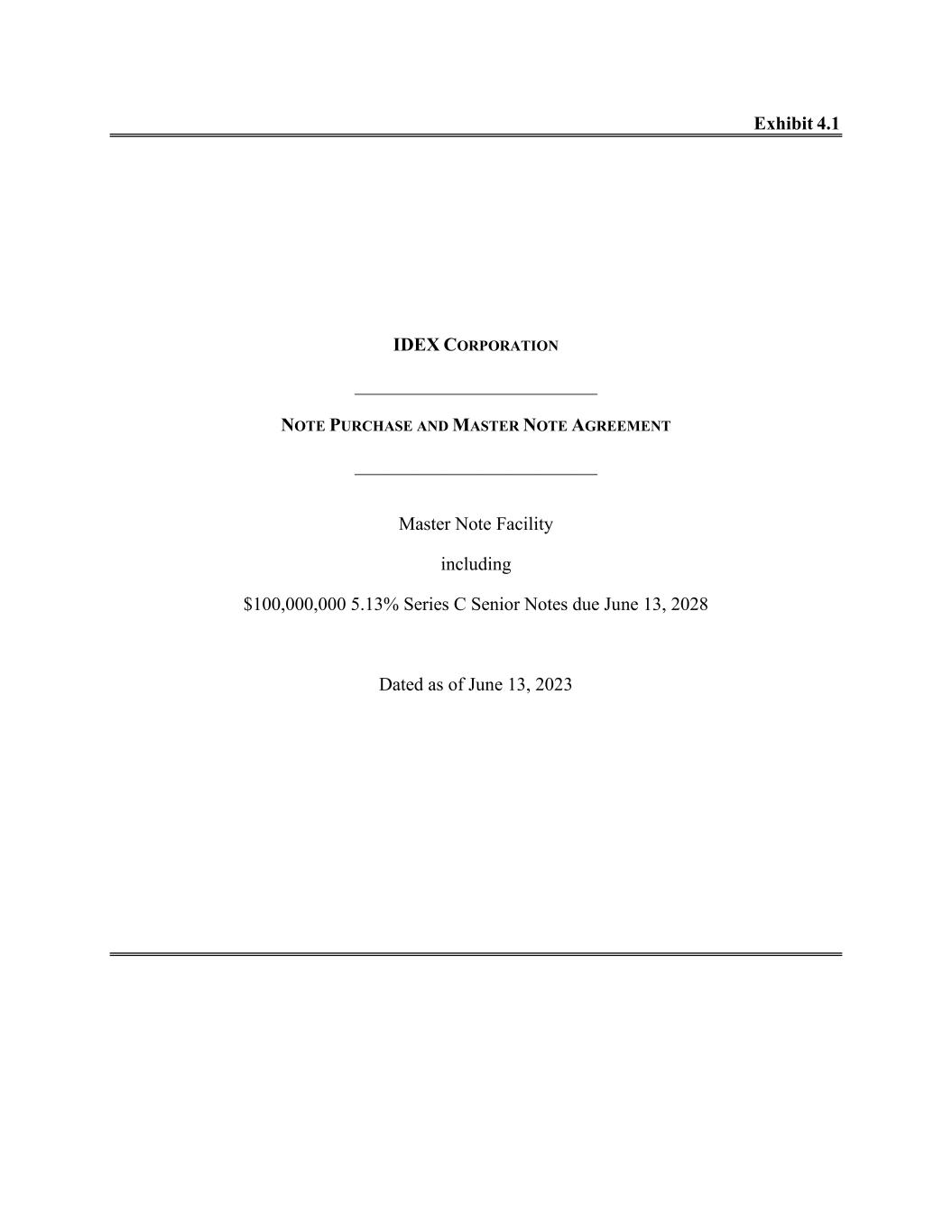 Exhibit 4.1 IDEX CORPORATION __________________________ NOTE PURCHASE AND MASTER NOTE AGREEMENT __________________________ Master Note Facility including $100,000,000 5.13% Series C Senior Notes due June 13, 2028 Dated as of June 13, 2023