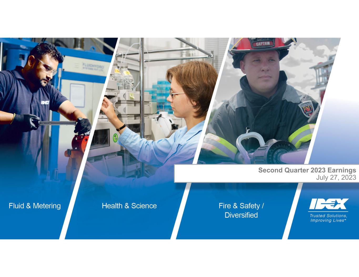 4IDEX Proprietary & Confidential Cautionary Statement Cautionary Statement Under the Private Securities Litigation Reform Act; Non-GAAP Measures This presentation contains “forward-looking” statements within the meaning of the Private Securities Litigation Reform Act of 1995, as amended. These statements may relate to, among other things, the Company’s third quarter 2023 and full year 2023 outlook including expected organic sales projections, expected earnings per share and adjusted earnings per share, and the assumptions underlying these expectations, anticipated future acquisition behavior, availability of cash and financing alternatives and the anticipated benefits of the Company’s recent acquisitions, including the acquisitions of Nexsight, LLC and its businesses Envirosight, WinCan, MyTana and Pipeline Renewal Technologies (“Nexsight”), KZ CO. ("KZValve"), Muon B.V. and its subsidiaries ("Muon Group") and Iridian Spectral Technologies ("Iridian"), and are indicated by words or phrases such as “anticipates,” “estimates,” “plans,” “guidance,” “expects,” “projects,” “forecasts,” “should,” “could,” “will,” “management believes,” “the Company believes,” “the Company intends” and similar words or phrases. These statements are subject to inherent uncertainties and risks that could cause actual results to differ materially from those anticipated at the date of this presentation. The risks and uncertainties include, but are not limited to, the following: levels of industrial activity and economic conditions in the U.S. and other countries around the world, including uncertainties in the financial markets and adverse developments affecting the financial services industry; pricing pressures, including inflation and rising interest rates, and other competitive factors and levels of capital spending in certain industries, all of which could have a material impact on order rates and the Company’s results; the impact of health epidemics and pandemics and terrorist attacks and wars, which could have an adverse impact on the Company's business by creating disruptions in the global supply chain and by potentially having an adverse impact on the global economy; the Company’s ability to make acquisitions and to integrate and operate acquired businesses on a profitable basis; the relationship of the U.S. dollar to other currencies and its impact on pricing and cost competitiveness; political and economic conditions in foreign countries in which the Company operates; developments with respect to trade policy and tariffs; capacity utilization and the effect this has on costs; labor markets; supply chain conditions; market conditions and material costs; risks related to environmental, social and corporate governance issues, including those related to climate change and sustainability; and developments with respect to contingencies, such as litigation and environmental matters. Additional factors that could cause actual results to differ materially from those reflected in the forward-looking statements include, but are not limited to, the risks discussed in the “Risk Factors” section included in the Company’s most recent annual report on Form 10-K and the Company’s subsequent quarterly reports filed with the Securities and Exchange Commission (“SEC”) and the other risks discussed in the Company’s filings with the SEC. The forward-looking statements included here are only made as of the date of this presentation, and management undertakes no obligation to publicly update them to reflect subsequent events or circumstances, except as may be required by law. Investors are cautioned not to rely unduly on forward-looking statements when evaluating the information presented here. This presentation contains non-GAAP financial information. Reconciliations of non-GAAP measures are included either in this presentation or our earnings release for the three-month period ending June 30, 2023, which is available on our website.