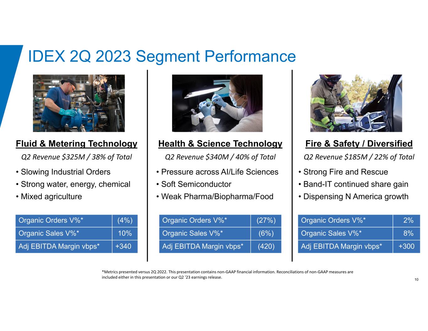 9IDEX Proprietary & Confidential Q2 2023 Adjusted EBITDA Walk Strong price/cost and variable compensation more than offset volume headwinds (Dollars in millions) *This presentation contains non‐GAAP financial information. Reconciliations of non‐GAAP measures are included either in this presentation or in our Q2 ‘23 earnings release. * *