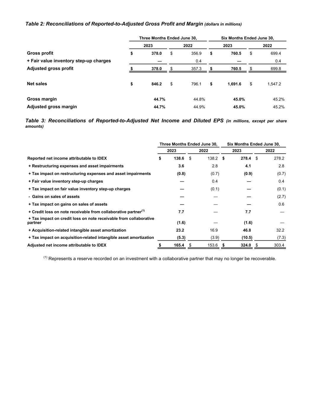 4IDEX Proprietary & Confidential Cautionary Statement Cautionary Statement Under the Private Securities Litigation Reform Act; Non-GAAP Measures This presentation contains “forward-looking” statements within the meaning of the Private Securities Litigation Reform Act of 1995, as amended. These statements may relate to, among other things, the Company’s third quarter 2023 and full year 2023 outlook including expected organic sales projections, expected earnings per share and adjusted earnings per share, and the assumptions underlying these expectations, anticipated future acquisition behavior, availability of cash and financing alternatives and the anticipated benefits of the Company’s recent acquisitions, including the acquisitions of Nexsight, LLC and its businesses Envirosight, WinCan, MyTana and Pipeline Renewal Technologies (“Nexsight”), KZ CO. ("KZValve"), Muon B.V. and its subsidiaries ("Muon Group") and Iridian Spectral Technologies ("Iridian"), and are indicated by words or phrases such as “anticipates,” “estimates,” “plans,” “guidance,” “expects,” “projects,” “forecasts,” “should,” “could,” “will,” “management believes,” “the Company believes,” “the Company intends” and similar words or phrases. These statements are subject to inherent uncertainties and risks that could cause actual results to differ materially from those anticipated at the date of this presentation. The risks and uncertainties include, but are not limited to, the following: levels of industrial activity and economic conditions in the U.S. and other countries around the world, including uncertainties in the financial markets and adverse developments affecting the financial services industry; pricing pressures, including inflation and rising interest rates, and other competitive factors and levels of capital spending in certain industries, all of which could have a material impact on order rates and the Company’s results; the impact of health epidemics and pandemics and terrorist attacks and wars, which could have an adverse impact on the Company's business by creating disruptions in the global supply chain and by potentially having an adverse impact on the global economy; the Company’s ability to make acquisitions and to integrate and operate acquired businesses on a profitable basis; the relationship of the U.S. dollar to other currencies and its impact on pricing and cost competitiveness; political and economic conditions in foreign countries in which the Company operates; developments with respect to trade policy and tariffs; capacity utilization and the effect this has on costs; labor markets; supply chain conditions; market conditions and material costs; risks related to environmental, social and corporate governance issues, including those related to climate change and sustainability; and developments with respect to contingencies, such as litigation and environmental matters. Additional factors that could cause actual results to differ materially from those reflected in the forward-looking statements include, but are not limited to, the risks discussed in the “Risk Factors” section included in the Company’s most recent annual report on Form 10-K and the Company’s subsequent quarterly reports filed with the Securities and Exchange Commission (“SEC”) and the other risks discussed in the Company’s filings with the SEC. The forward-looking statements included here are only made as of the date of this presentation, and management undertakes no obligation to publicly update them to reflect subsequent events or circumstances, except as may be required by law. Investors are cautioned not to rely unduly on forward-looking statements when evaluating the information presented here. This presentation contains non-GAAP financial information. Reconciliations of non-GAAP measures are included either in this presentation or our earnings release for the three-month period ending June 30, 2023, which is available on our website.