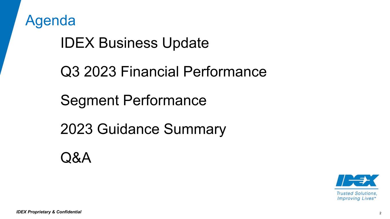 2IDEX Proprietary & Confidential Agenda IDEX Business Update Q3 2023 Financial Performance Segment Performance 2023 Guidance Summary Q&A