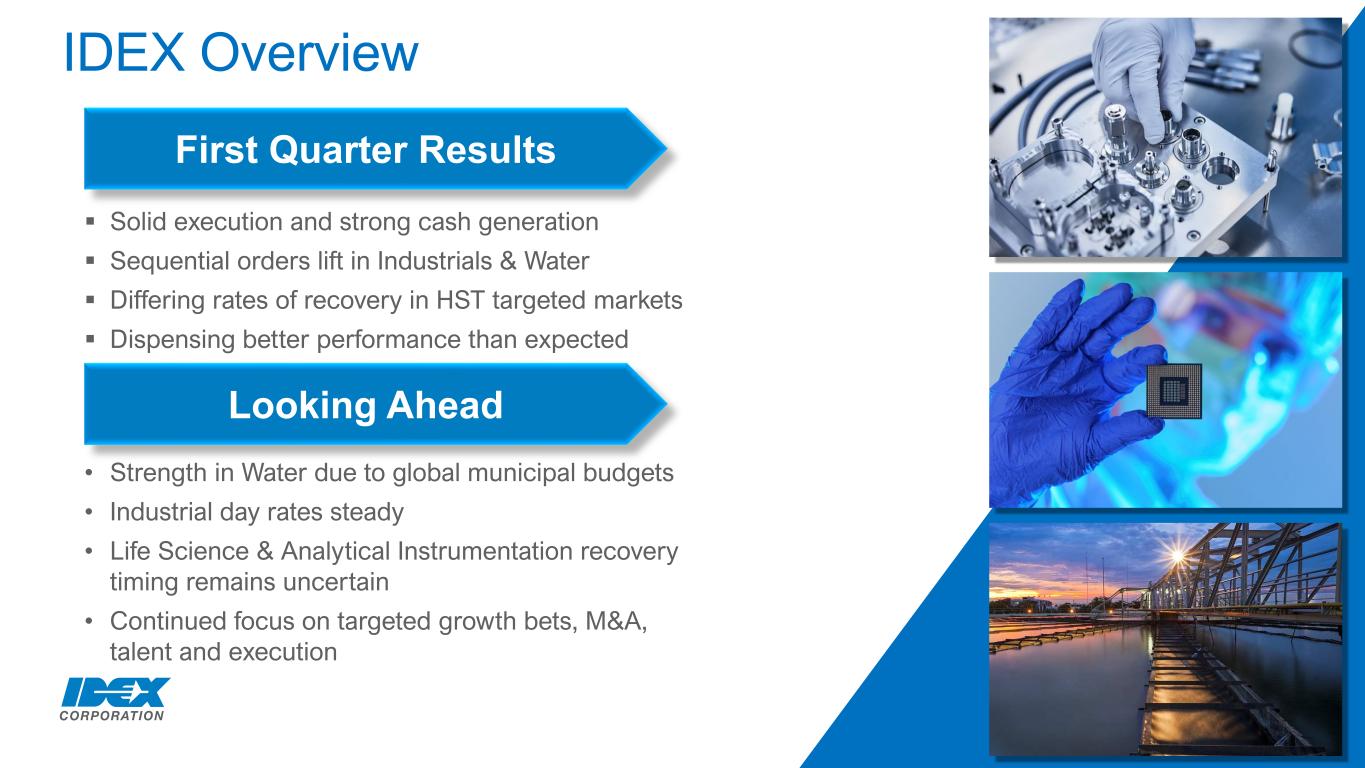 Click Here to Edit TitleIDEX Ov rview 3  Solid execution and strong cash generation  Sequential orders lift in Industrials & Water  Differing rates of recovery in HST targeted markets  Dispensing better performance than expected • Strength in Water due to global municipal budgets • Industrial day rates steady • Life Science & Analytical Instrumentation recovery timing remains uncertain • Continued focus on targeted growth bets, M&A, talent and execution First Quarter Results Looking Ahead