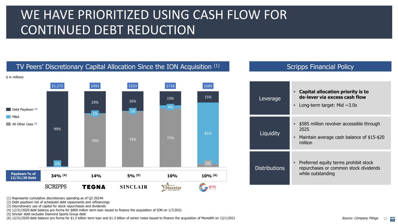 I N V E S T O R P R E S E N T A T I O N D E C E M B E R 2 0 2 4 G I V E L I G H T A N D T H E P E O P L E W I L L F I N D T H E I R O W N W A Y THE E.W. SCRIPPS COMPANY