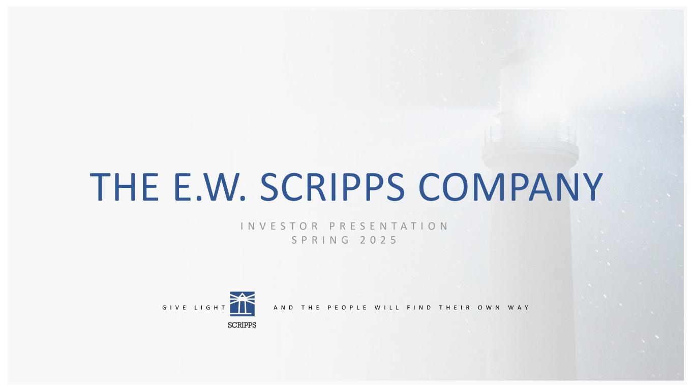 I N V E S T O R P R E S E N T A T I O N S P R I N G 2 0 2 5 G I V E L I G H T A N D T H E P E O P L E W I L L F I N D T H E I R O W N W A Y THE E.W. SCRIPPS COMPANY