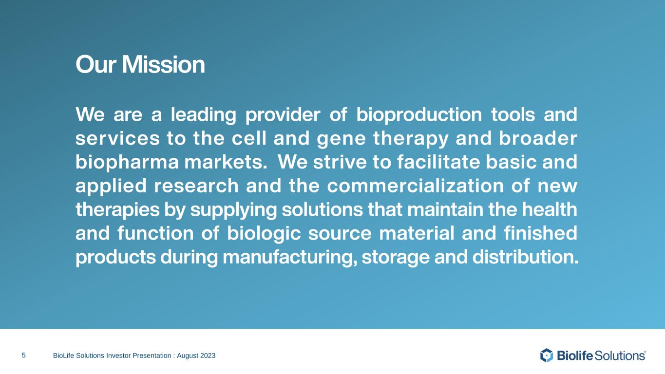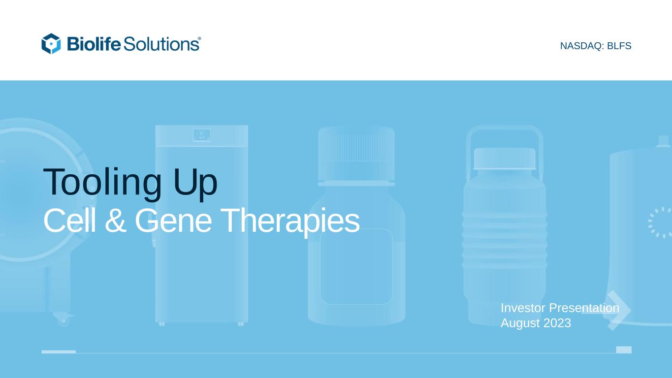 BioLife Solutions Investor Presentation : August 20231 NASDAQ: BLFS Tooling Up Cell & Gene Therapies Investor Presentation August 2023
