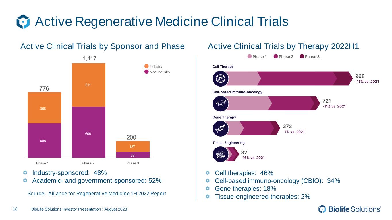 BioLife Solutions Investor Presentation : August 202317 Regenerative Medicine Market