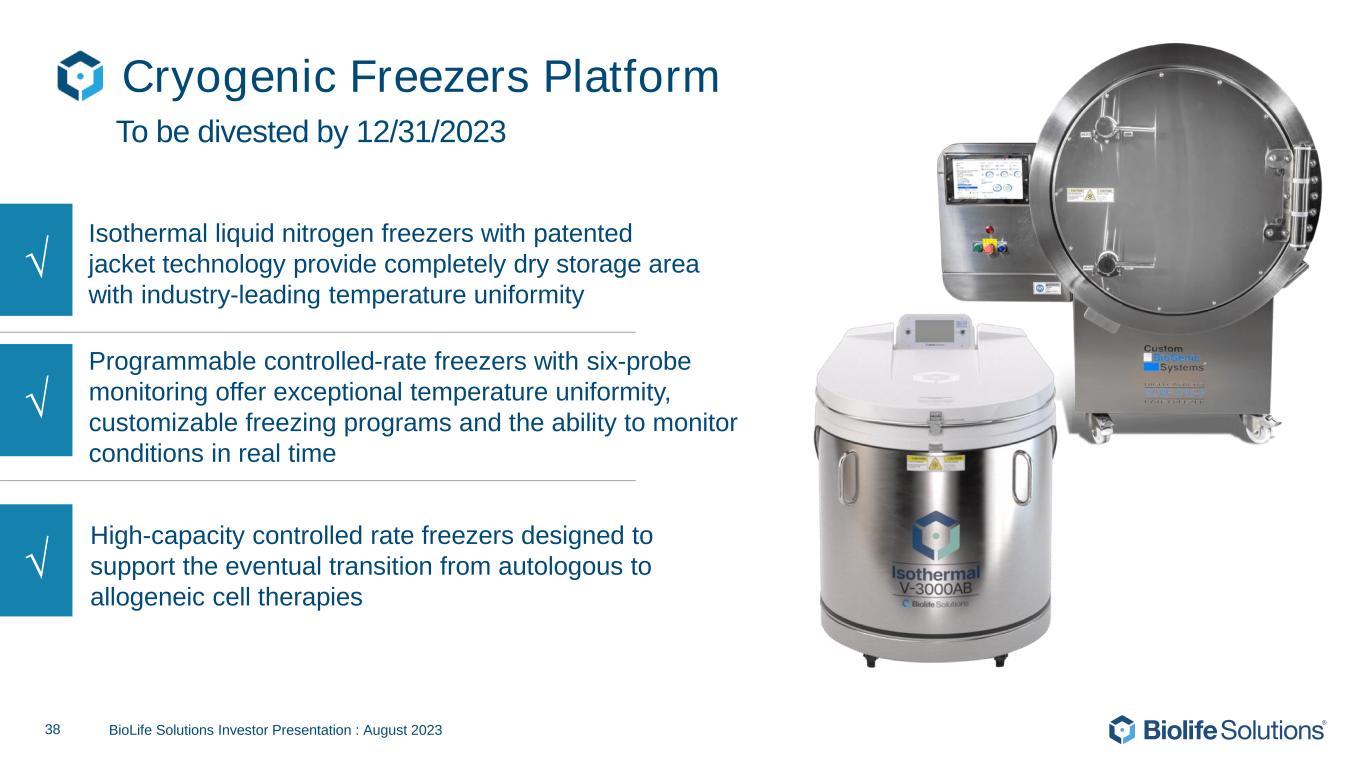 BioLife Solutions Investor Presentation : August 202337 Freezers & Thaw Systems Platform