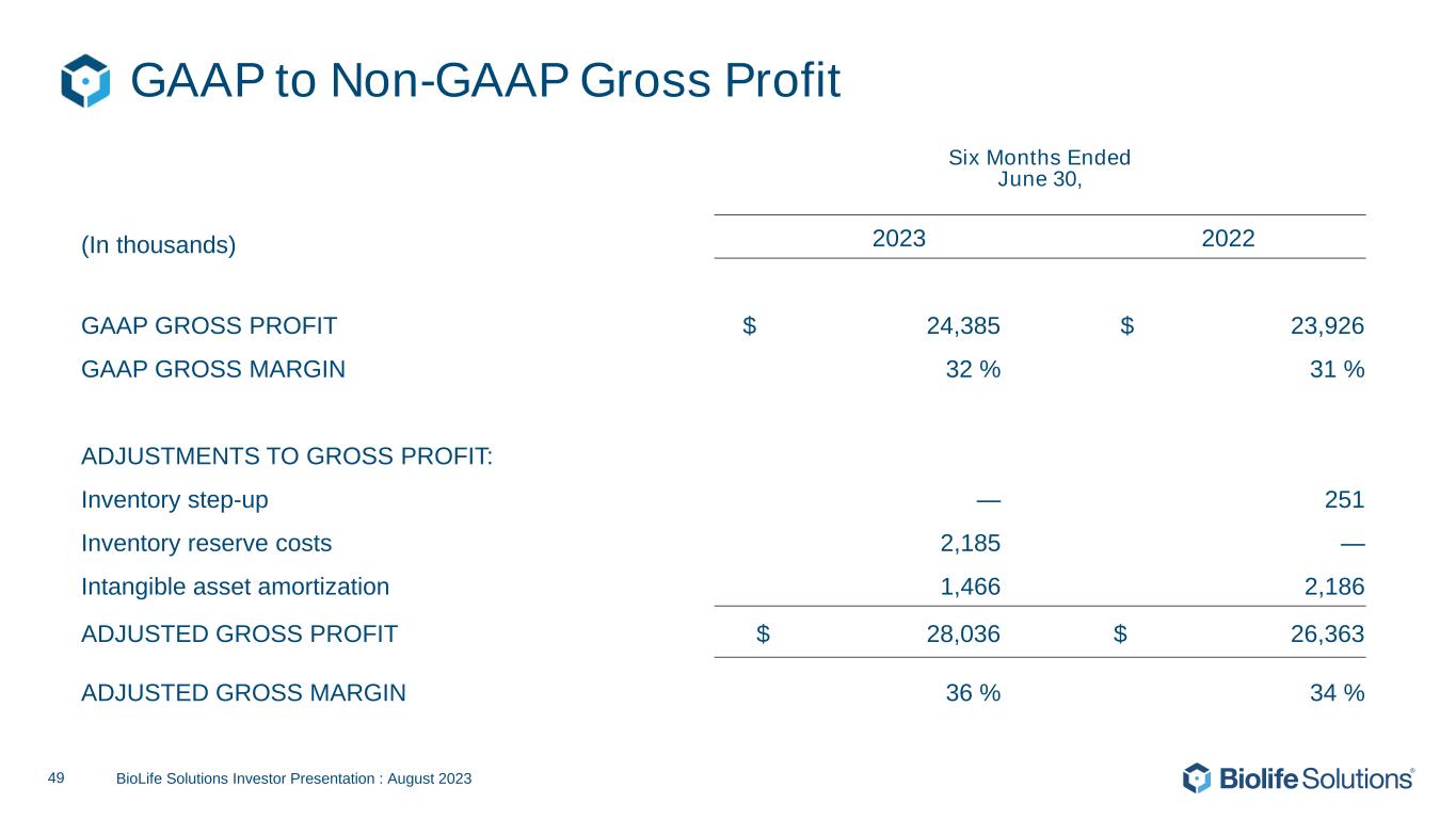 BioLife Solutions Investor Presentation : August 202348 GAAP to Non-GAAP Financial Information