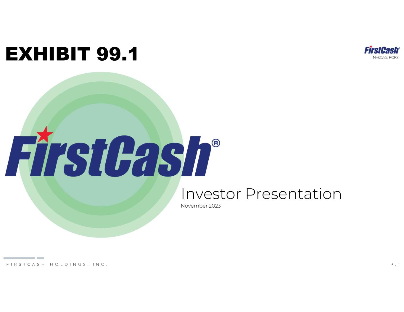 P . 1F I R S T C A S H H O L D I N G S , I N C . NASDAQ: FCFS Investor Presentation November 2023 EXHIBIT 99.1