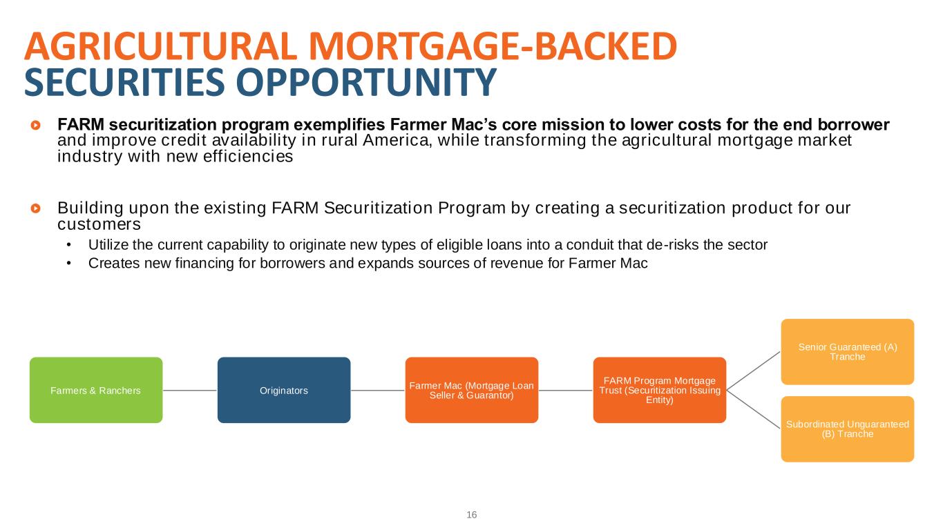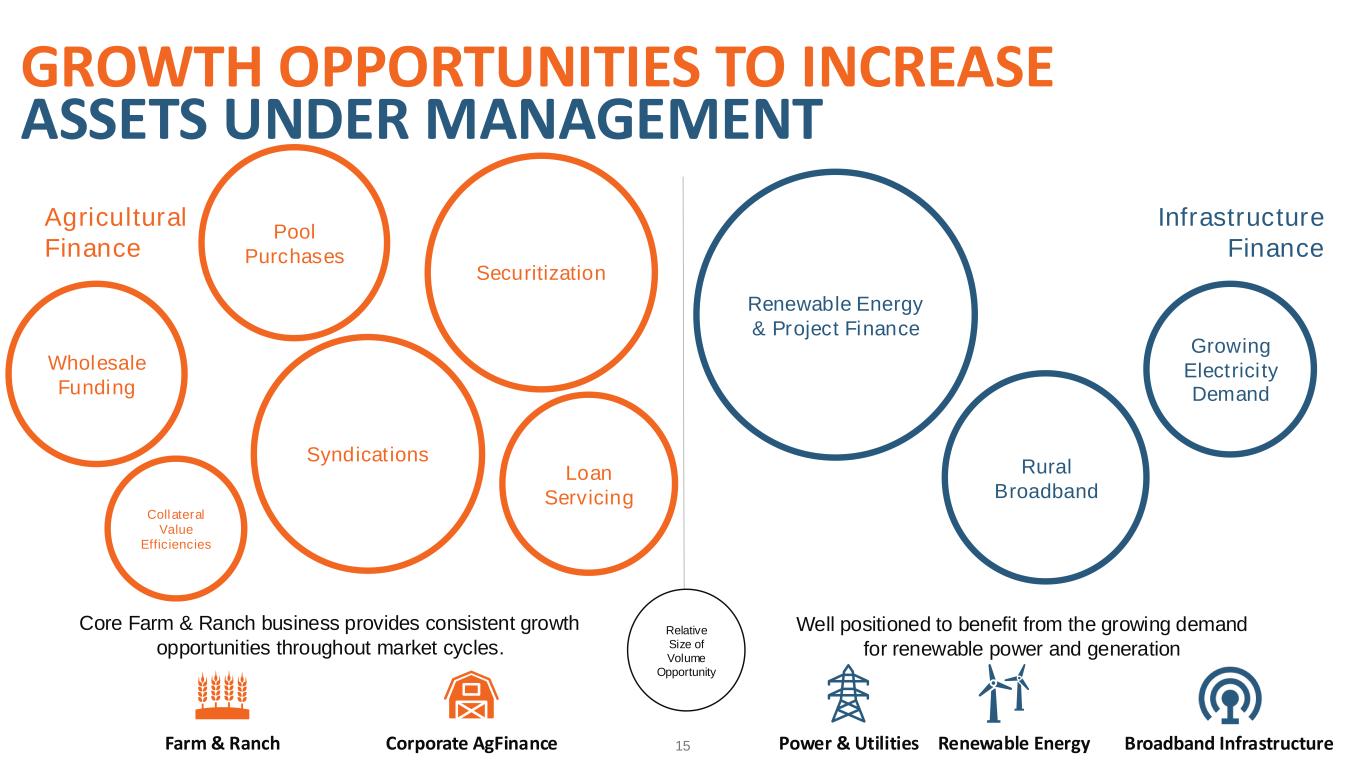 GROWTH OPPORTUNITIES TO INCREASE ASSETS UNDER MANAGEMENT 15Farm & Ranch Corporate AgFinance Core Farm & Ranch business provides consistent growth opportunities throughout market cycles. Well positioned to benefit from the growing demand for renewable power and generation Agricultural Finance Infrastructure Finance Renewable Energy Relative Size of Volume Opportunity Securitization Pool Purchases Syndications Wholesale Funding Loan Servicing Collateral Value Efficiencies Renewable Energy & Project Finance Rural Broadband Growing Electricity Demand Power & Utilities Broadband Infrastructure