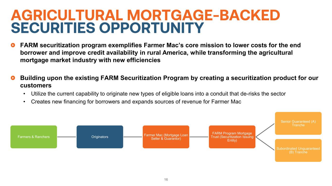 GROWTH OPPORTUNITIES TO INCREASE ASSETS UNDER MANAGEMENT 15Farm & Ranch Corporate AgFinance Core Farm & Ranch business provides consistent growth opportunities throughout market cycles. Well positioned to benefit from the growing demand for renewable power and generation Agricultural Finance Infrastructure Finance Renewable Energy Relative Size of Volume Opportunity Securitization Pool Purchases Syndications Wholesale Funding Loan Servicing Collateral Value Efficiencies Renewable Energy & Project Finance Rural Broadband Growing Electricity Demand Power & Utilities Broadband Infrastructure