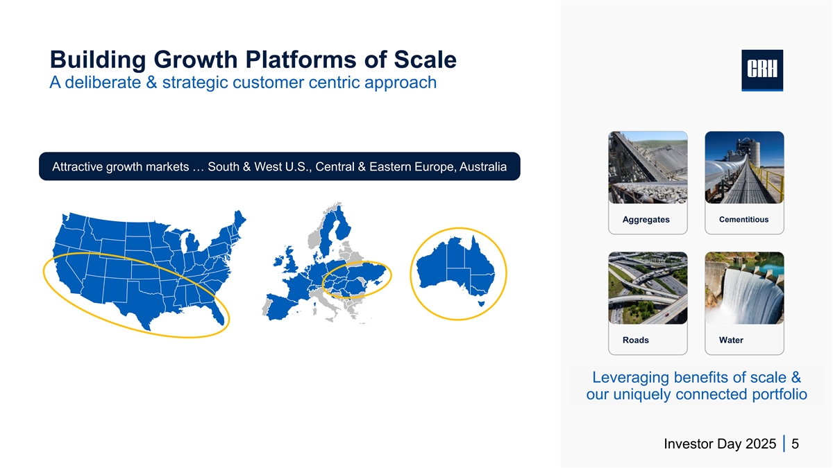 Proven Growth Capabilities A deeply embedded mindset throughout our organization • Empowered teams & local relationships … the acquirer of choice >1,250 Acquisitions since 1970 • Disciplined & value-focused approach • Unmatched acquisition, integration & synergy delivery capabilities 30 transactions on average every year • Greater optionality for capital deployment … over last decade underpinned by a connected portfolio … building platforms of scale in attractive markets … Investor Day 2025 4