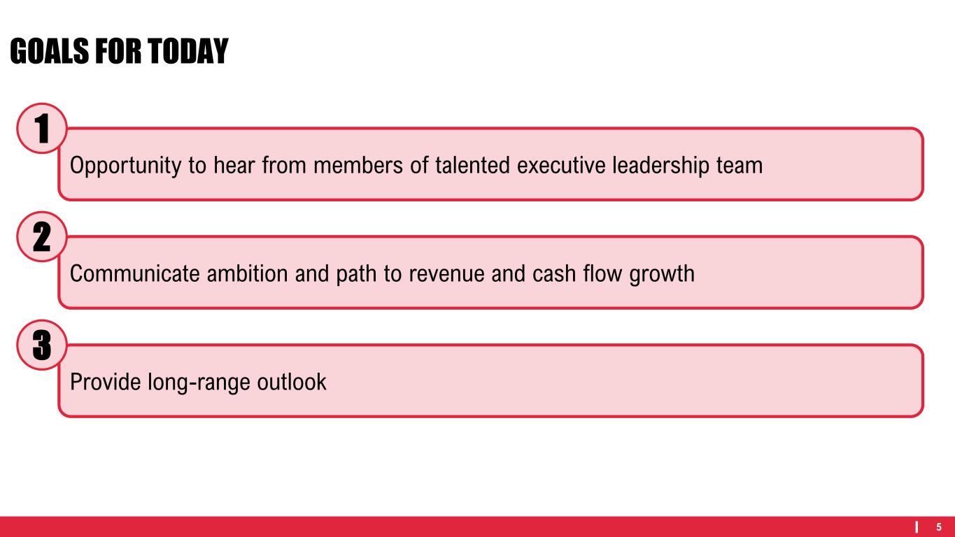 5 GOALS FOR TODAY Opportunity to hear from members of talented executive leadership team Communicate ambition and path to revenue and cash flow growth Provide long-range outlook 1 2 3
