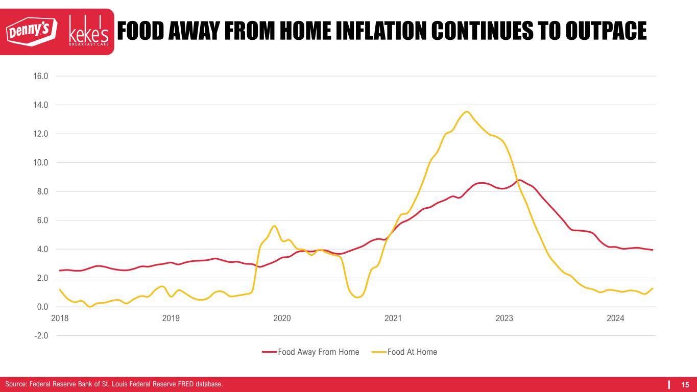 15 FOOD AWAY FROM HOME INFLATION CONTINUES TO OUTPACE -2.0 0.0 2.0 4.0 6.0 8.0 10.0 12.0 14.0 16.0 2018 2019 2020 2021 2023 2024 Food Away From Home Food At Home Source: Federal Reserve Bank of St. Louis Federal Reserve FRED database.