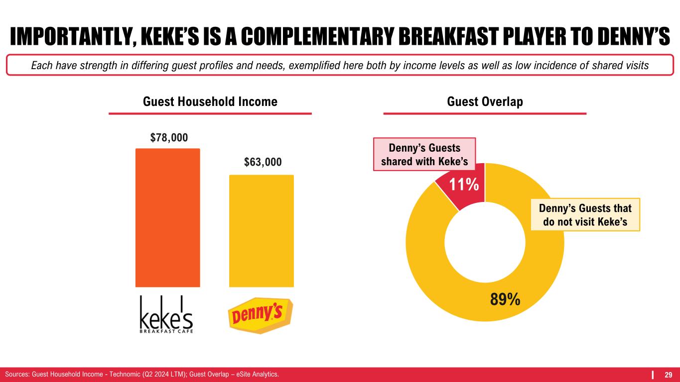 28 TWO COMPLEMENTARY BREAKFAST-FORWARD BRANDS Household Income $1.9M $1.8M Average Check $63k $78k Off-Premises % of Sales $16 $18 Alcohol Mix 20% 16% Net Sentiment <1% 3% 49 Average Unit Volume 69 Data through Q3 2024.
