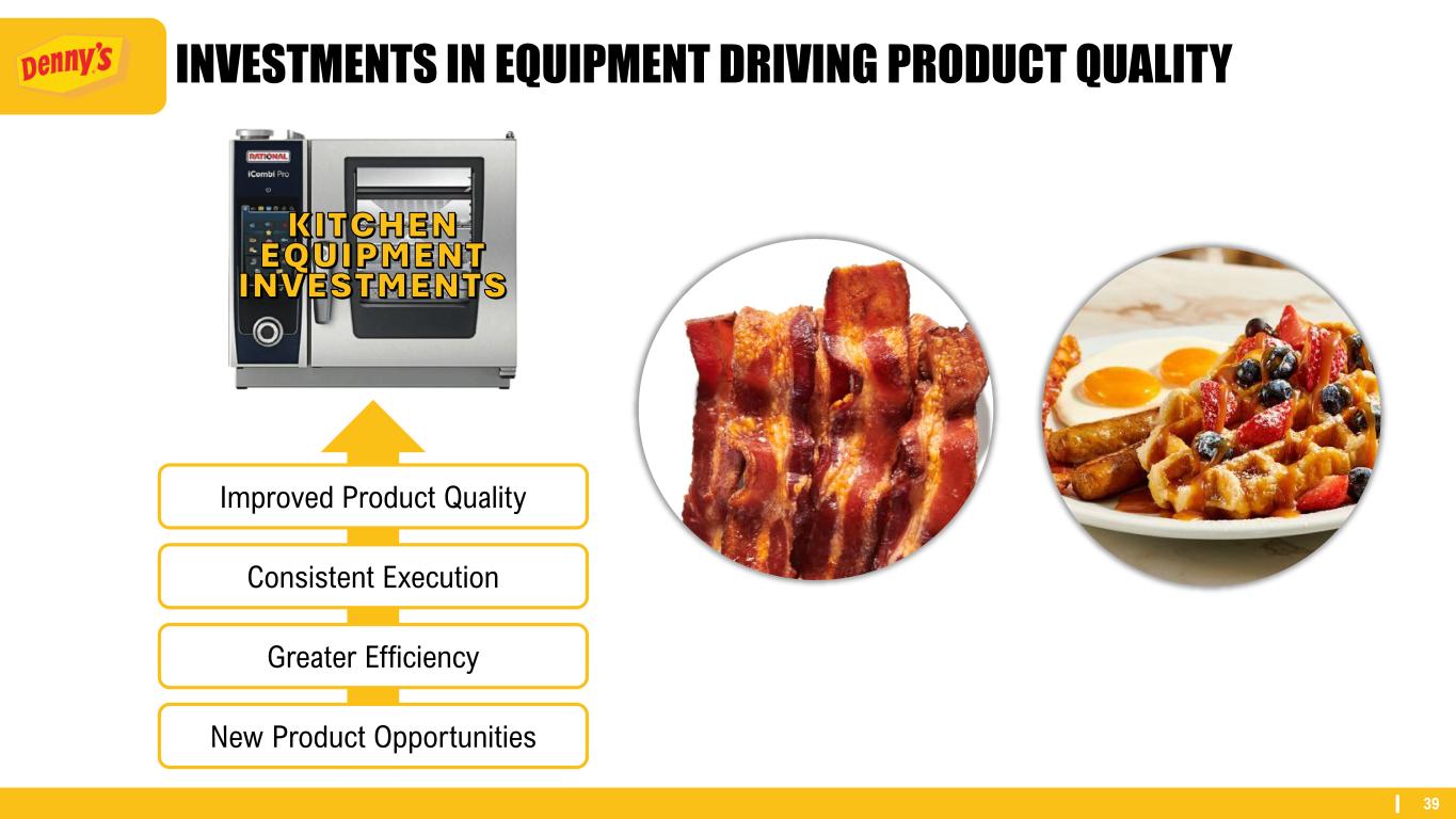 39 INVESTMENTS IN EQUIPMENT DRIVING PRODUCT QUALITY KITCHEN EQUIPMENT INVESTMENTS Improved Product Quality Consistent Execution Greater Efficiency New Product Opportunities