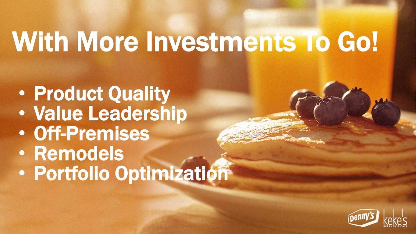 With More Investments To Go! • Product Quality • Value Leadership • Off-Premises • Remodels • Portfolio Optimization