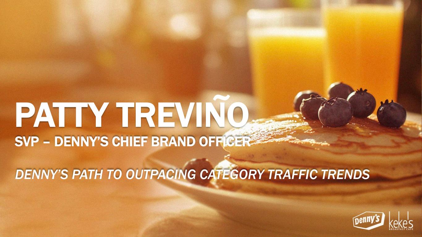 SVP – DENNY’S CHIEF BRAND OFFICER DENNY’S PATH TO OUTPACING CATEGORY TRAFFIC TRENDS PATTY TREVINO ~