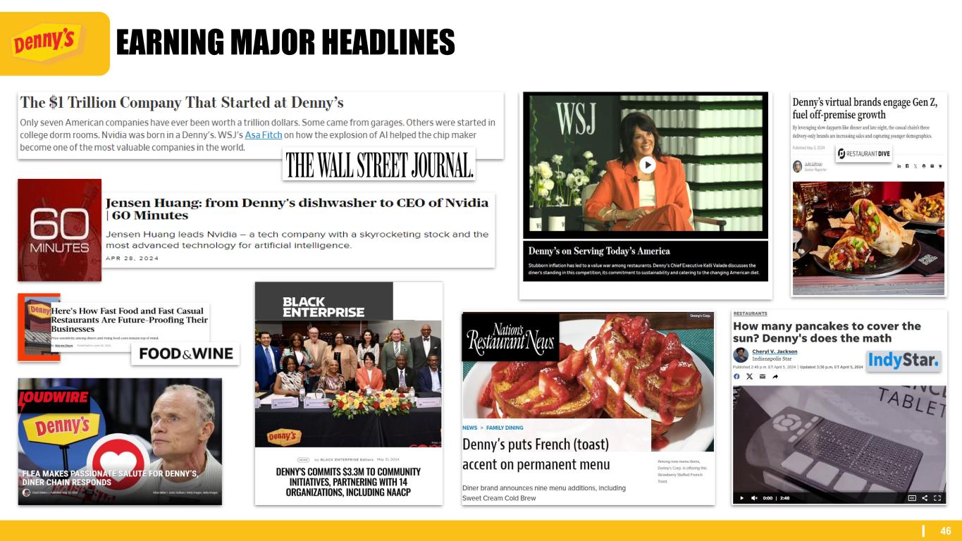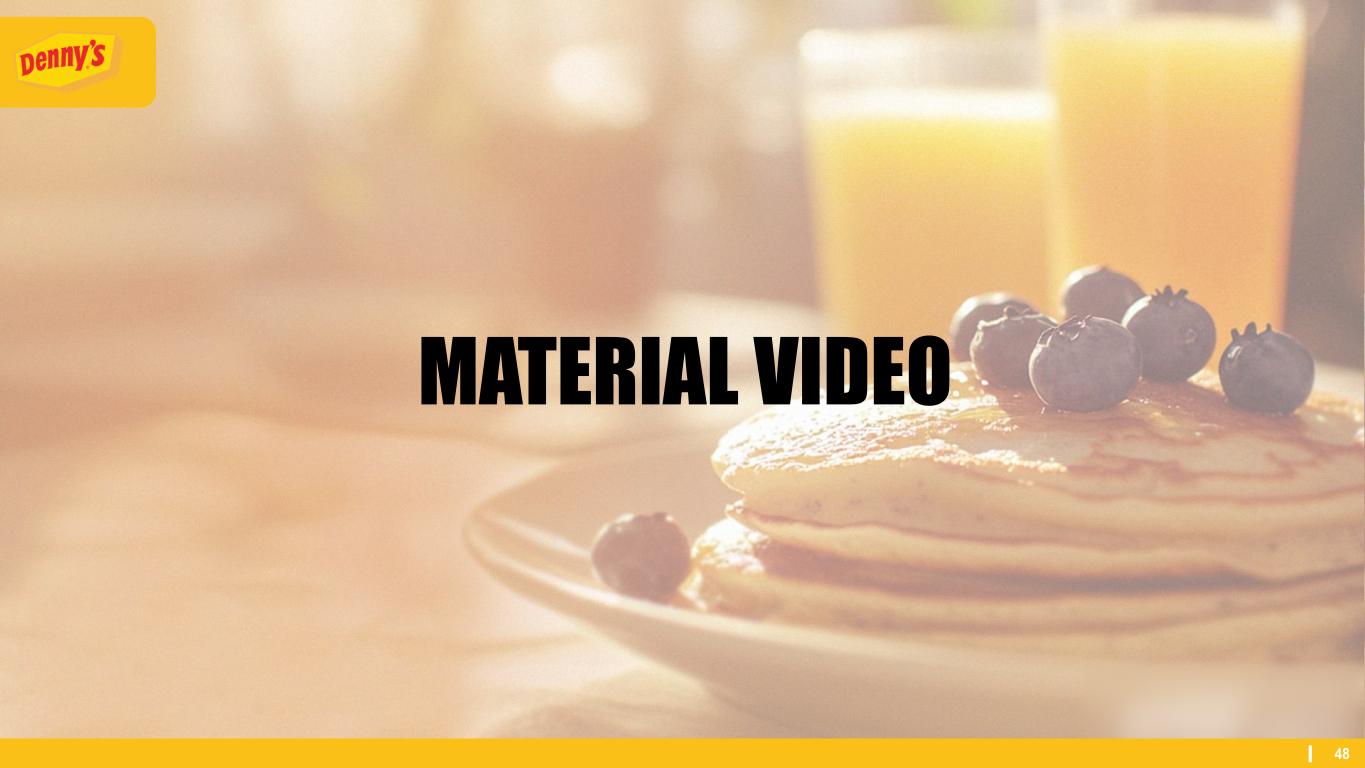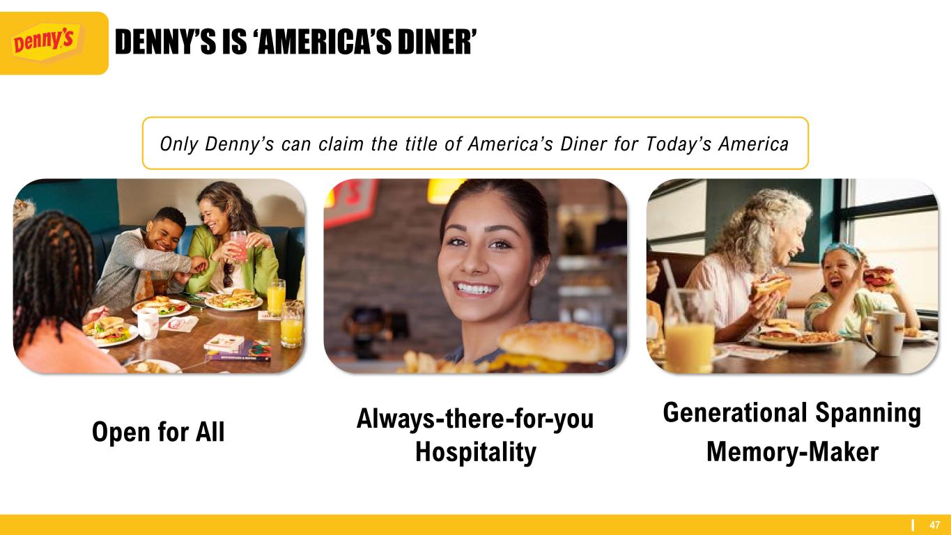 47 DENNY’S IS ‘AMERICA’S DINER’ Only Denny’s can claim the title of America’s Diner for Today’s America Open for All Generational Spanning Memory-Maker Always-there-for-you Hospitality