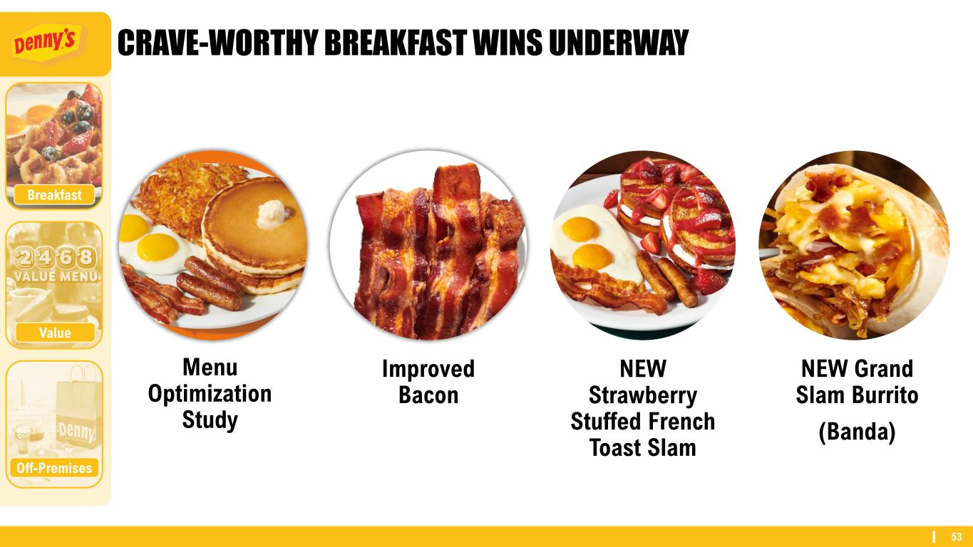 52 Off-Premises Breakfast Value REIGNITE BREAKFAST GROWTH THROUGH 3 AREAS OF FOCUS CORE MENU OPTIMIZATION QUALITY INVESTMENT NEW INNOVATION