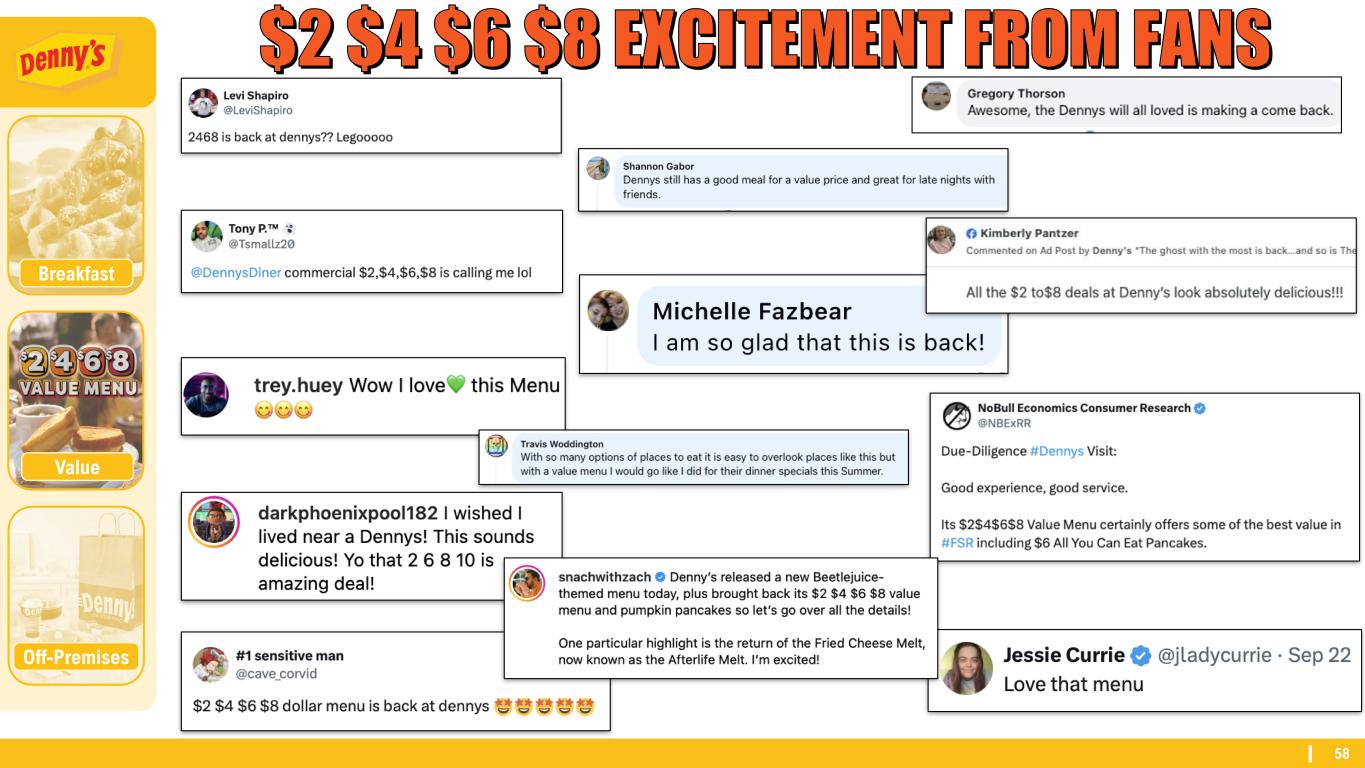58 Off-Premises Breakfast Value $2 $4 $6 $8 EXCITEMENT FROM FANS