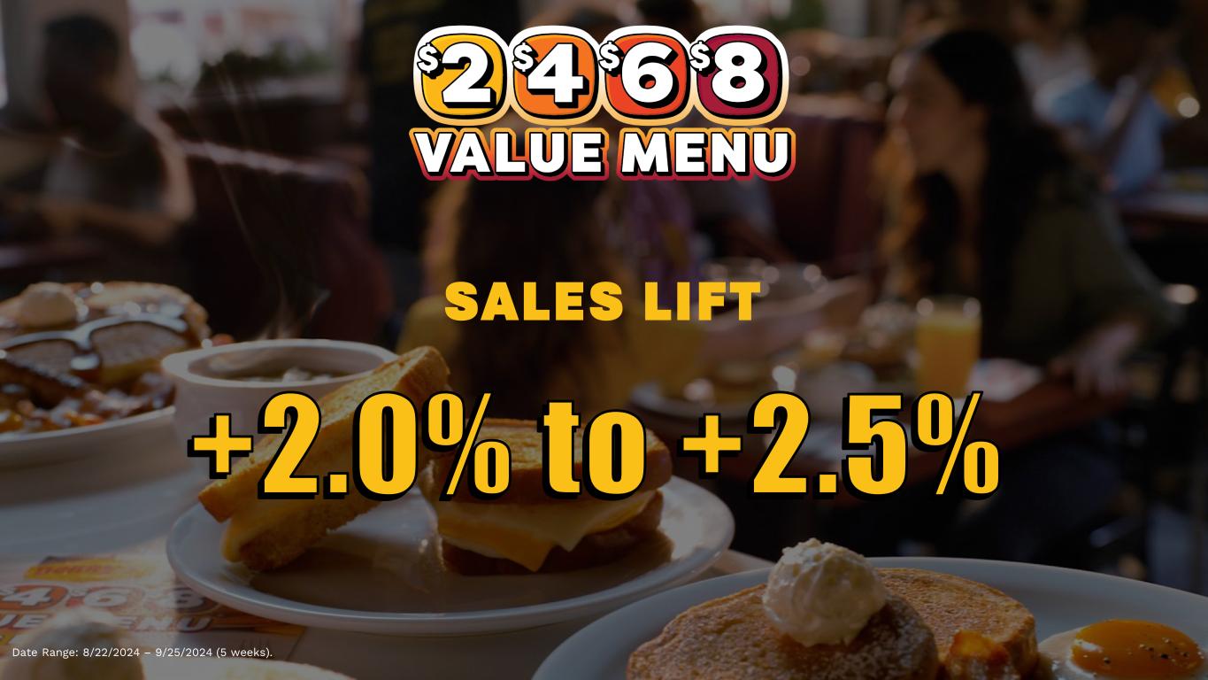 +2.0% to +2.5% SALES LIFT Date Range: 8/22/2024 – 9/25/2024 (5 weeks).