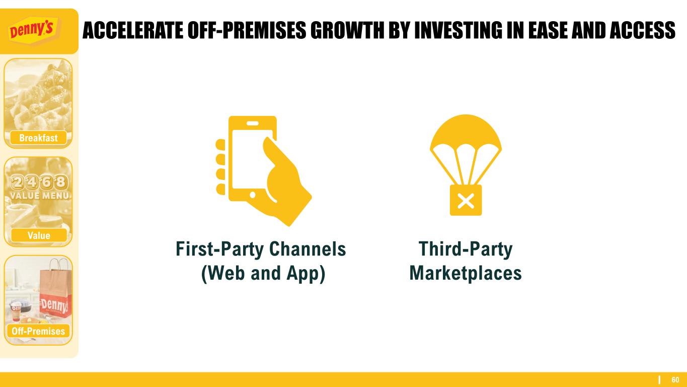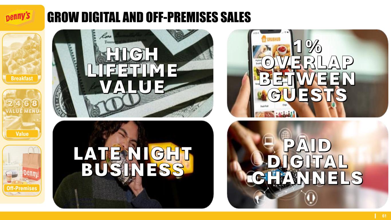 60 ACCELERATE OFF-PREMISES GROWTH BY INVESTING IN EASE AND ACCESS Third-Party Marketplaces First-Party Channels (Web and App) Off-Premises Breakfast Value