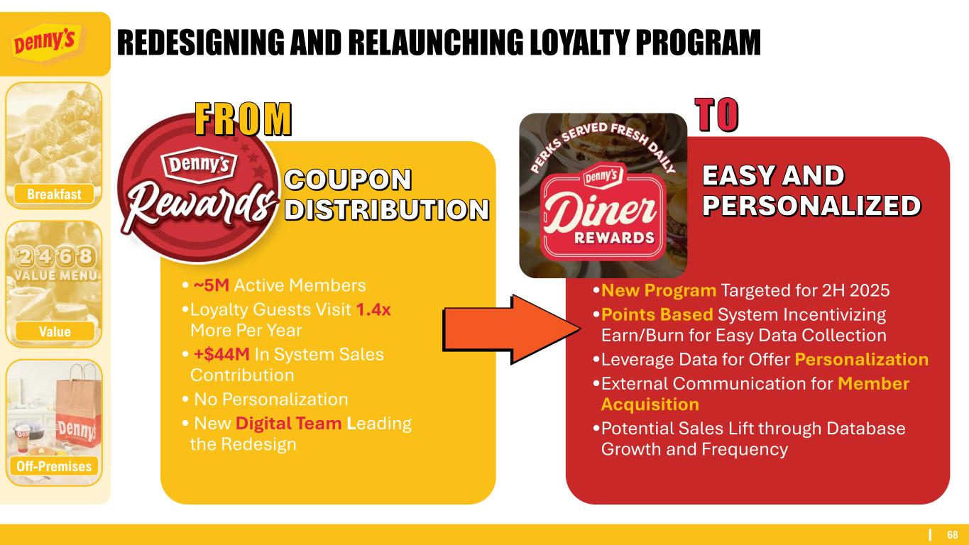 68 REDESIGNING AND RELAUNCHING LOYALTY PROGRAM Off-Premises Breakfast Value COUPON DISTRIBUTION EASY AND PERSONALIZED • ~5M Active Members •Loyalty Guests Visit 1.4x More Per Year • +$44M In System Sales Contribution • No Personalization • New Digital Team Leading the Redesign •New Program Targeted for 2H 2025 •Points Based System Incentivizing Earn/Burn for Easy Data Collection •Leverage Data for Offer Personalization •External Communication for Member Acquisition •Potential Sales Lift through Database Growth and Frequency FROM TO