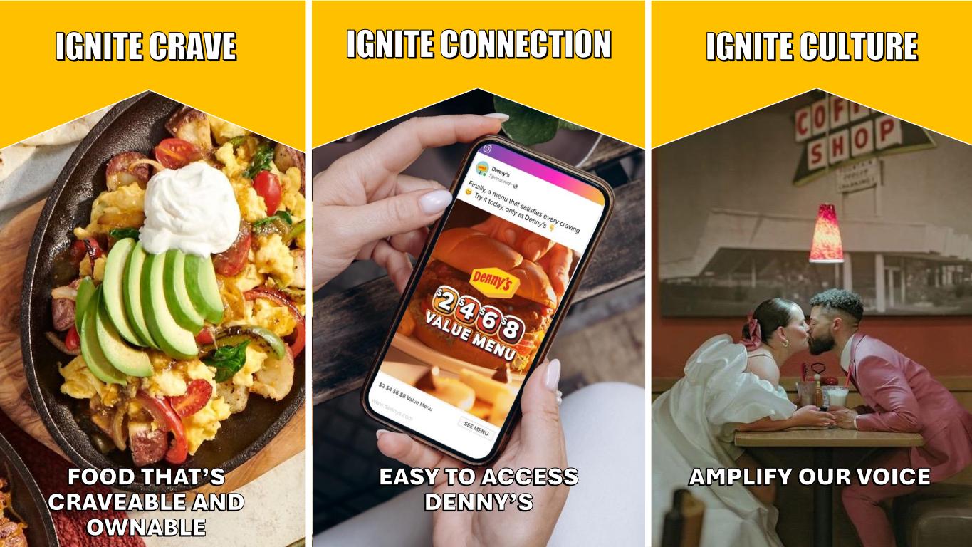 IGNITE CRAVE IGNITE CONNECTION IGNITE CULTURE FOOD THAT’S CRAVEABLE AND OWNABLE EASY TO ACCESS DENNY’S AMPLIFY OUR VOICE