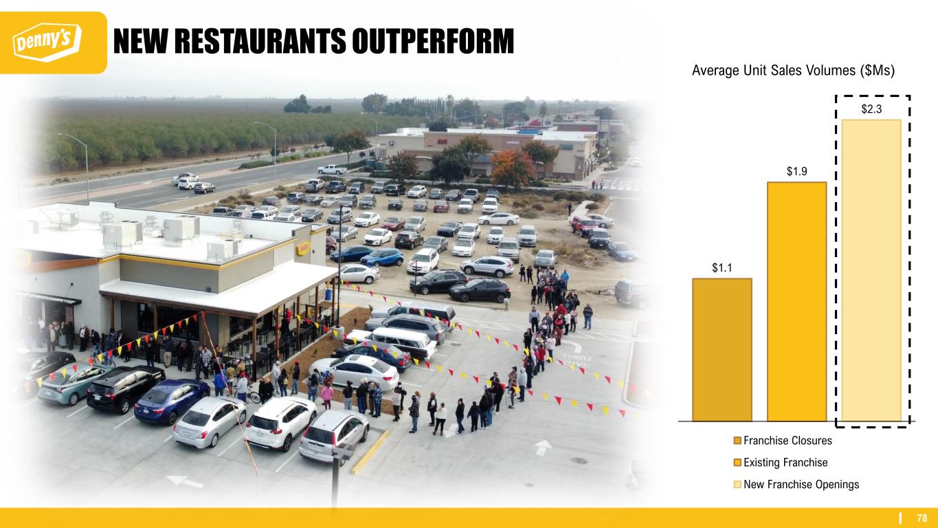 78 $1.1 $1.9 $2.3 Franchise Closures Existing Franchise New Franchise Openings NEW RESTAURANTS OUTPERFORM Average Unit Sales Volumes ($Ms)