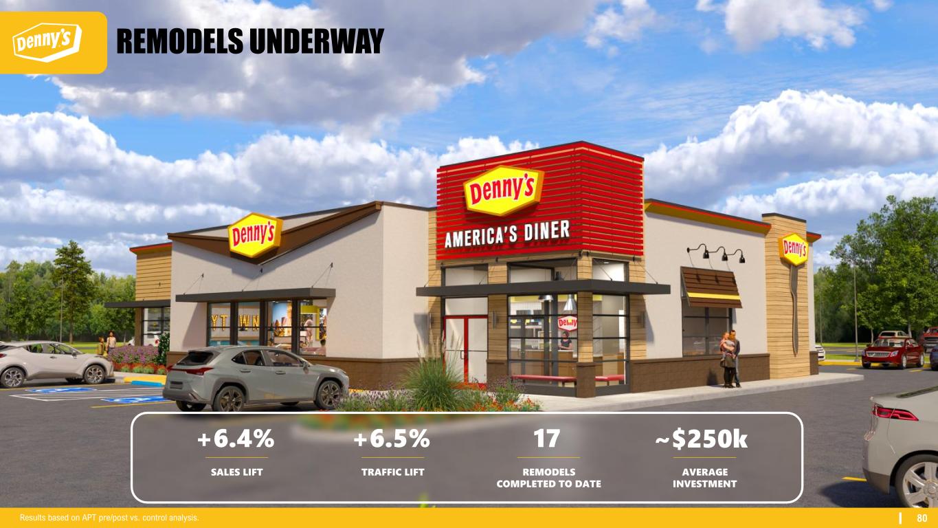 80 REMODELS UNDERWAY +6.4% SALES LIFT +6.5% TRAFFIC LIFT 17 REMODELS COMPLETED TO DATE ~$250k AVERAGE INVESTMENT Results based on APT pre/post vs. control analysis.