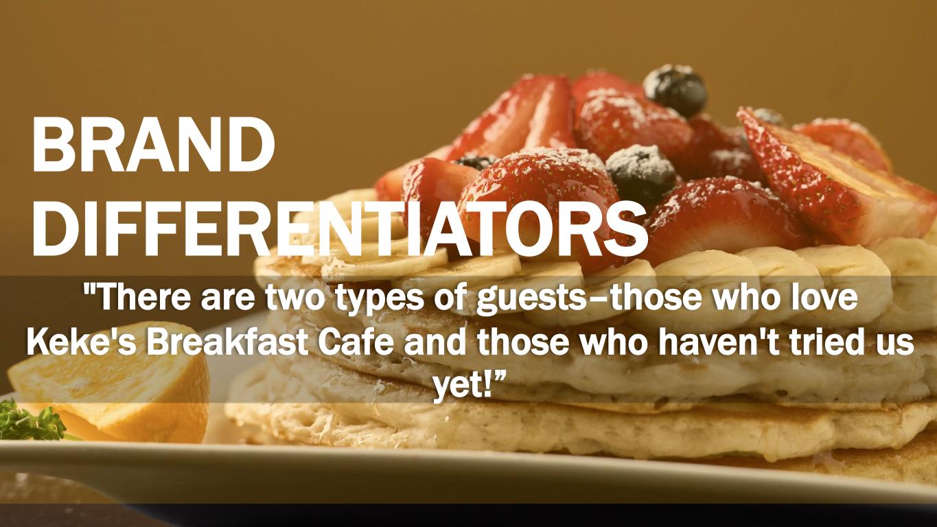 "There are two types of guests–those who love Keke's Breakfast Cafe and those who haven't tried us yet!” BRAND DIFFERENTIATORS