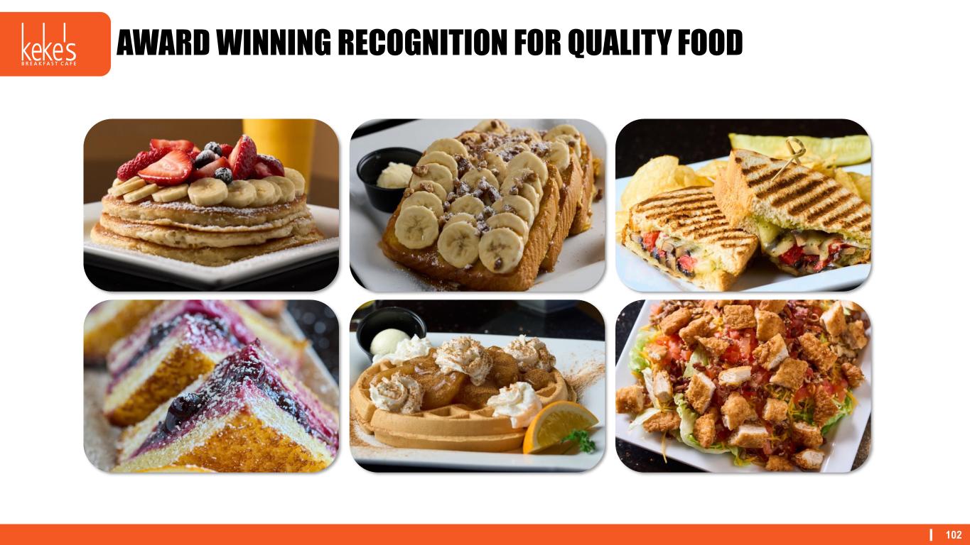 102 AWARD WINNING RECOGNITION FOR QUALITY FOOD