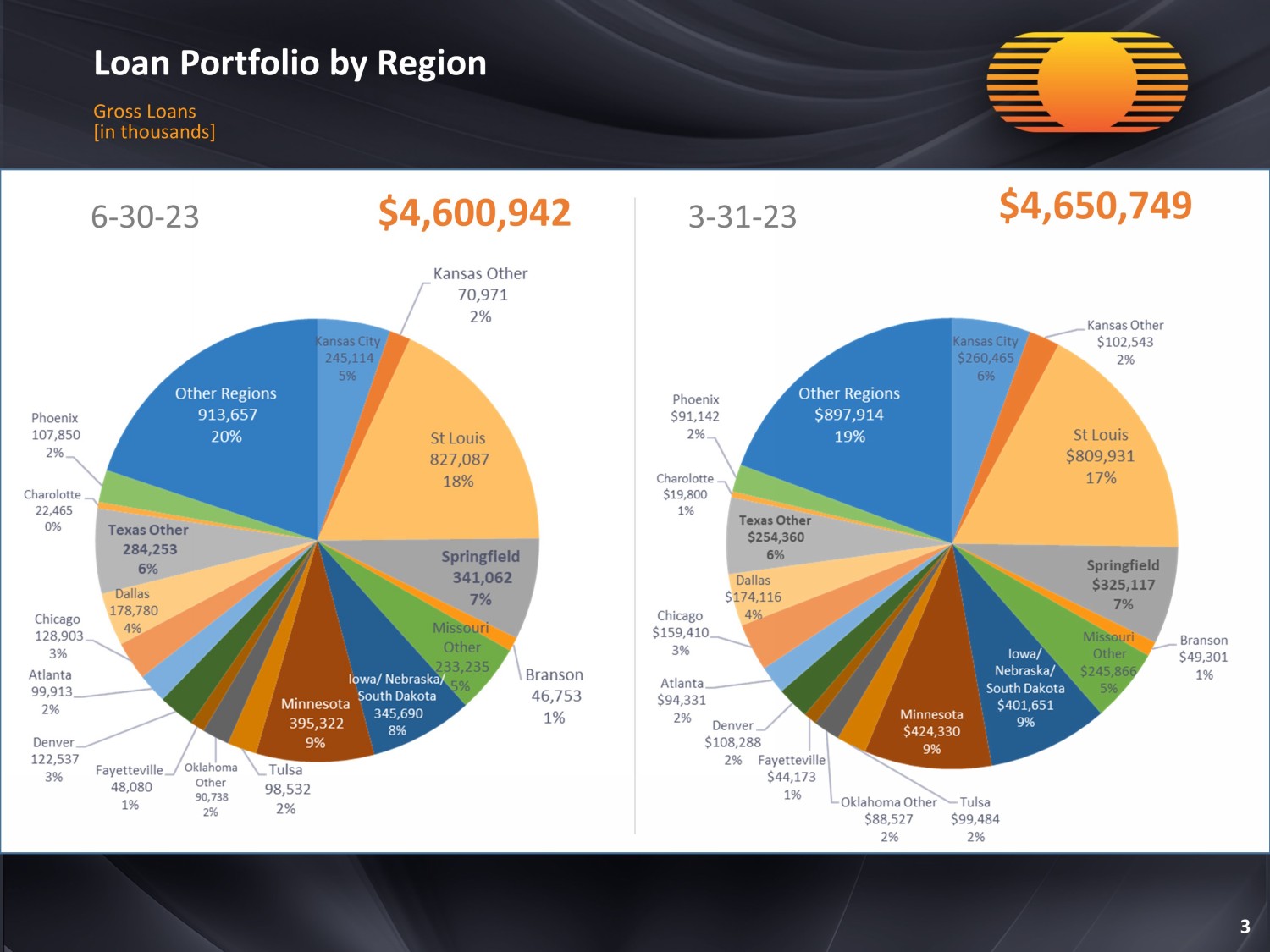 Loan Portfolio by Region Gross Loans [in thousands] 3 6 - 30 - 23 $4,600,942 3 - 31 - 23 $4,650,749
