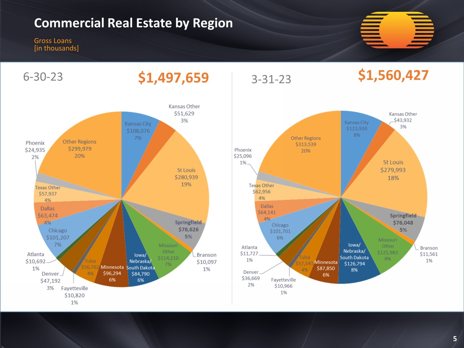Commercial Real Estate by Region Gross Loans [in thousands] 5 6 - 30 - 23 $1,497,659 3 - 31 - 23 $1,560,427