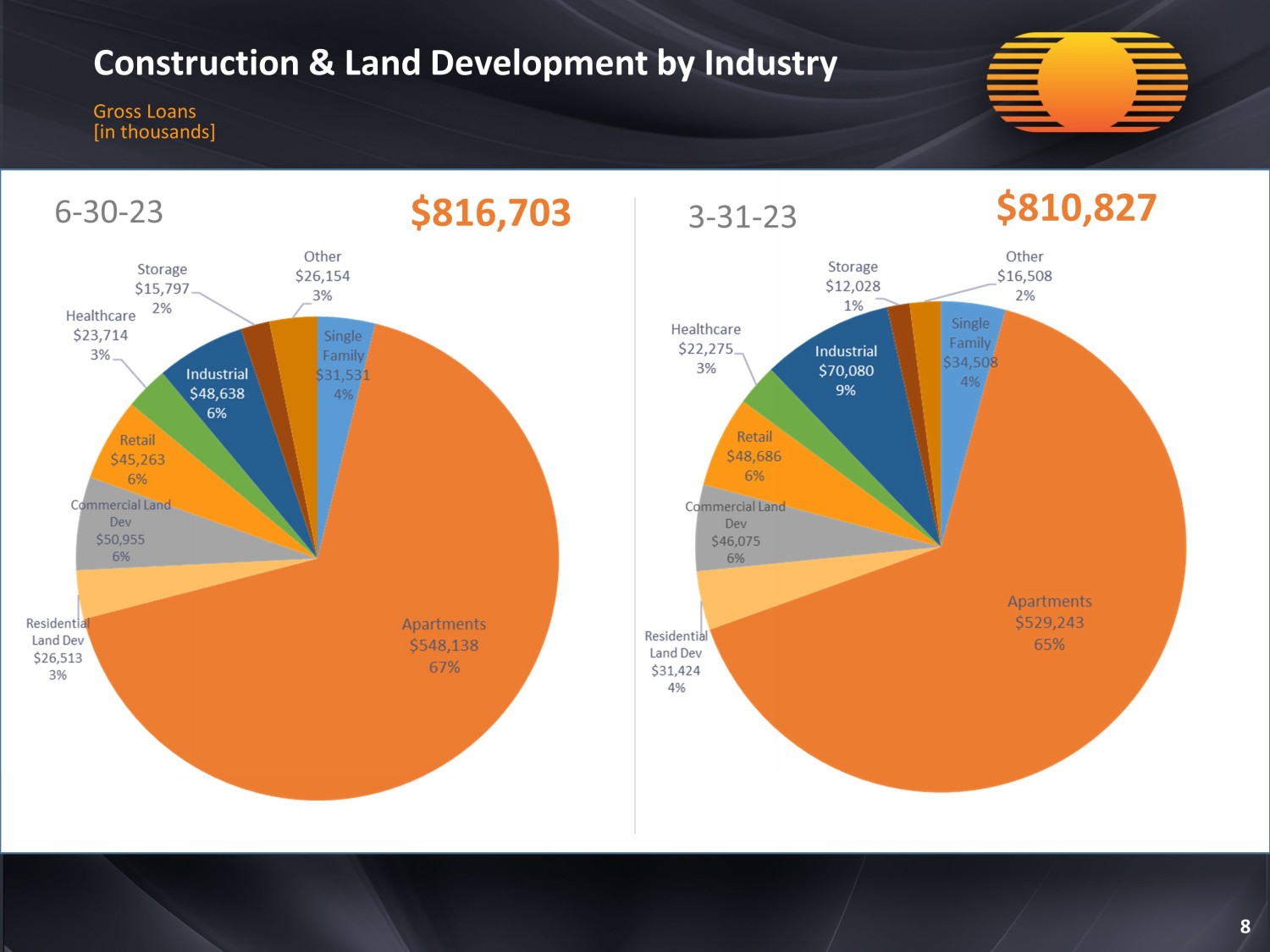 Construction & Land Development by Industry Gross Loans [in thousands] 8 6 - 30 - 23 $816,703 3 - 31 - 23 $810,827