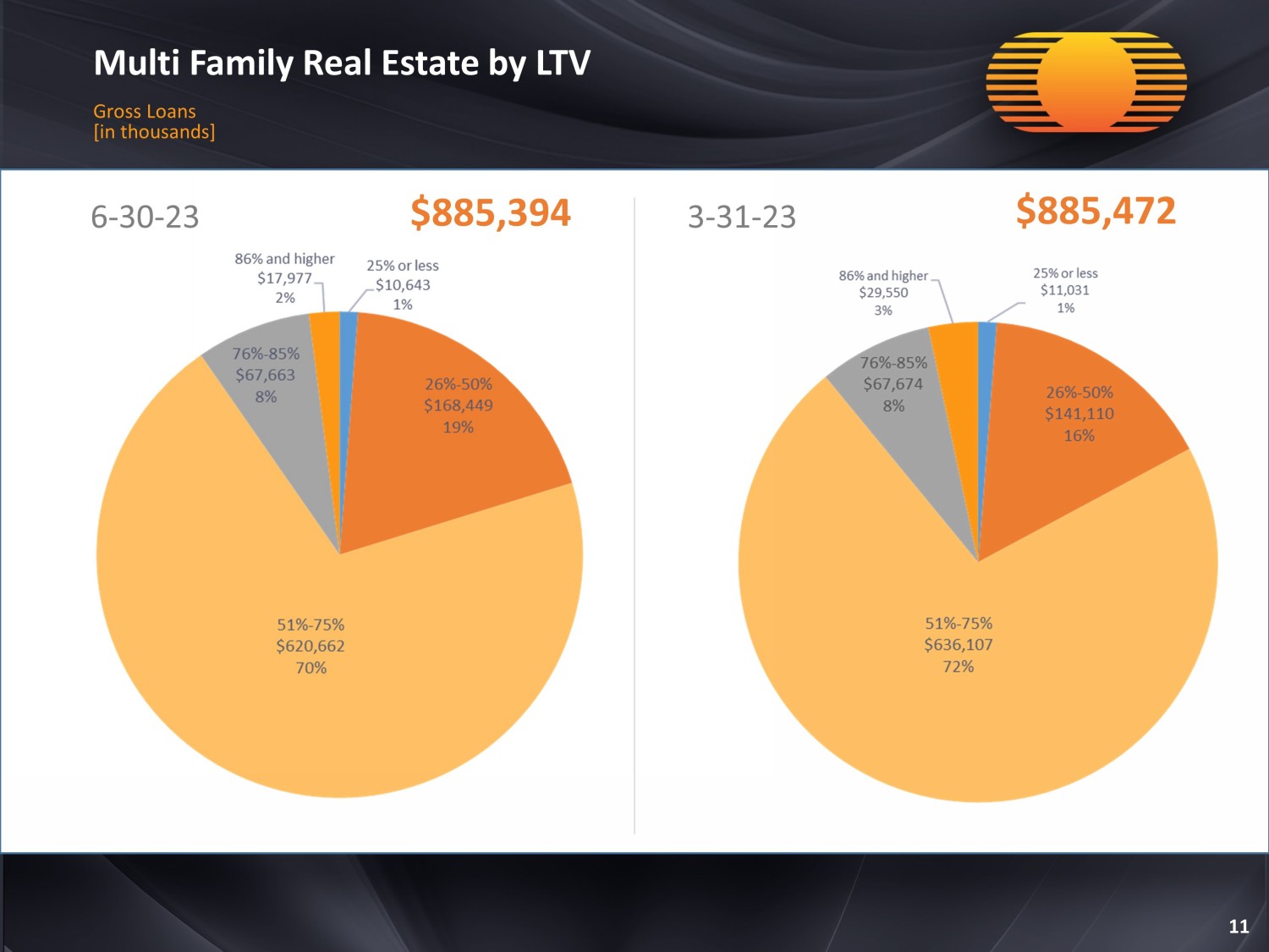Multi Family Real Estate by LTV Gross Loans [in thousands] 11 6 - 30 - 23 $885,394 3 - 31 - 23 $885,472