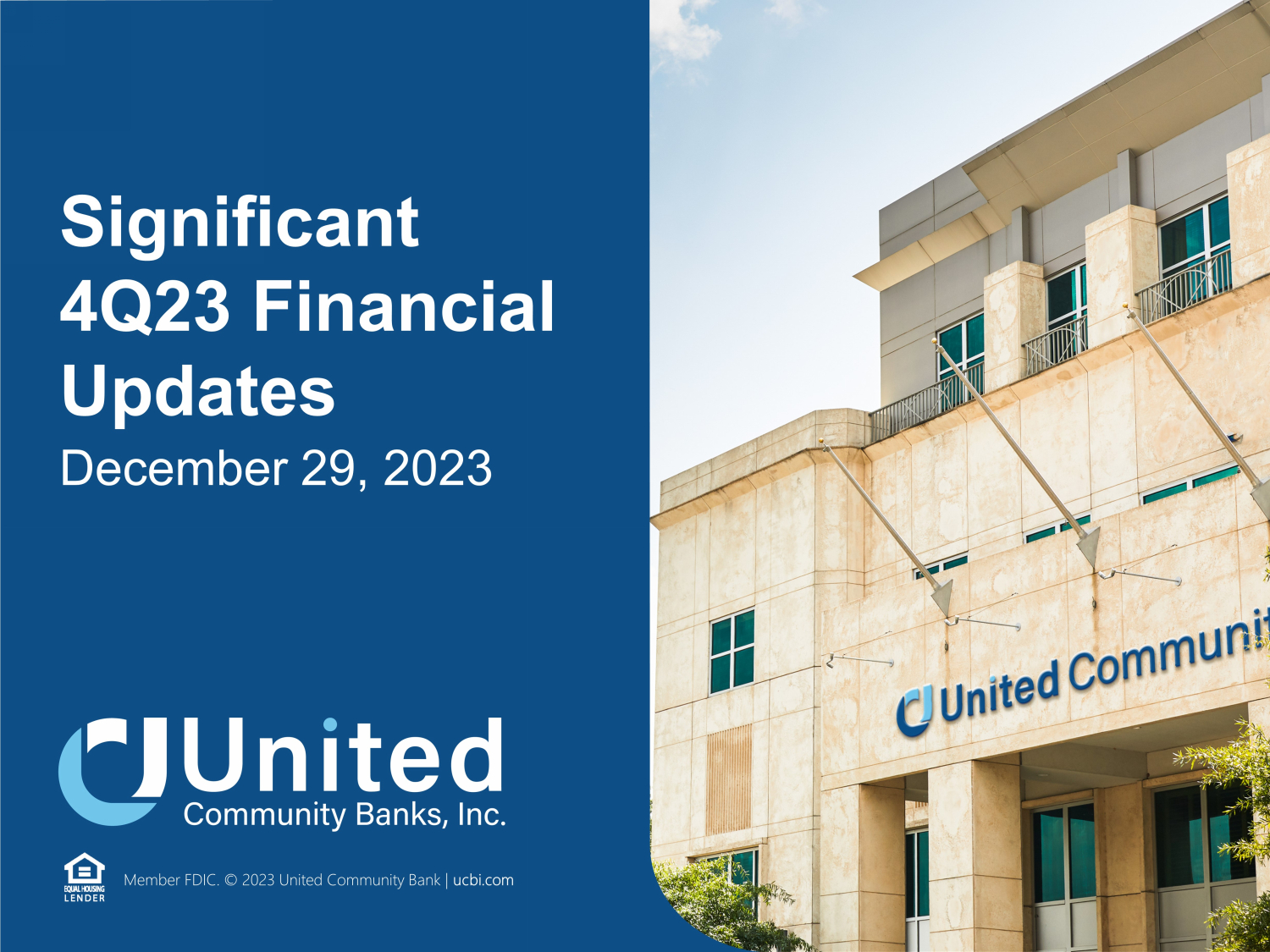 Member FDIC. © 2023 United Community Bank | ucbi.com Significant 4Q23 Financial Updates December 29, 2023